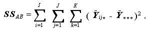 完全無作為化2要因デザインで釣り合い型デザインデータとその分散分析表は、 Table 1.4、1.5、及び 1.6 のようになる。 ここで、サンプル総数は、N=IJK である。