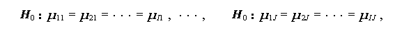 そこで、単純主効果の検定のための帰無仮説は、I+J 個あり、つぎのように なる: