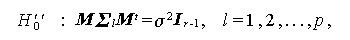 一方、(2.61) 式の M の列数は $\mbSigma_l$ の次数に等しいが、 M の行数は、大局的球形仮説の場合が $\mbSigma_l$ の次数マイナス1である 場合を除き、どの局所的球形仮説であるかにより変る。すなわち、一般に、このような 場合、多標本球形仮説は、大局的なものと局所的なものの2種類がある。もちろん、 反復測度要因が1つの場合、残りの独立測度がいくつあっても、大局的・局所的の 区別はなくなることは明らかである。すなわち例えば SPF-pr.q でも SPF-prt.q デザインでも、多標本球形仮説は (2.61) 式1つだけである。